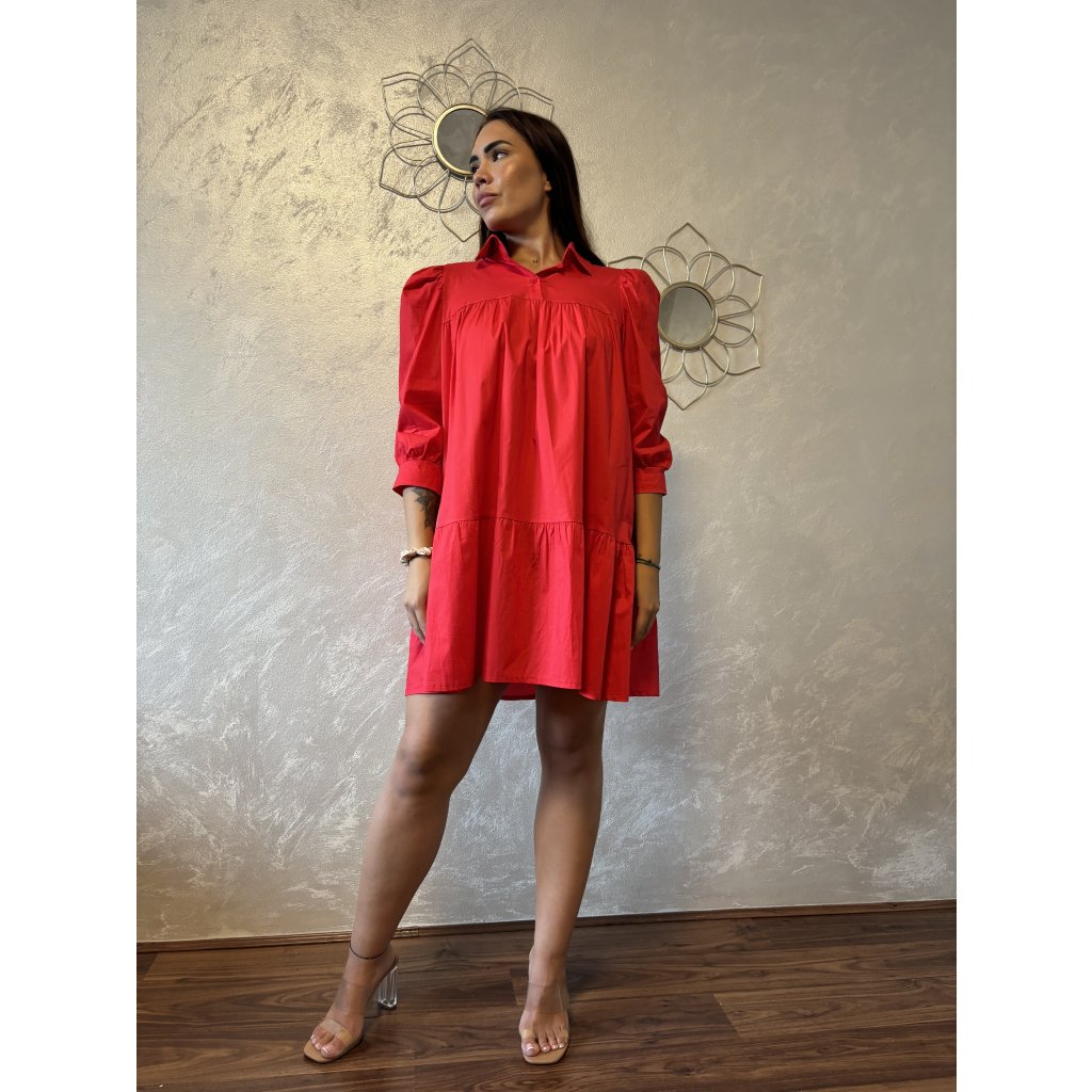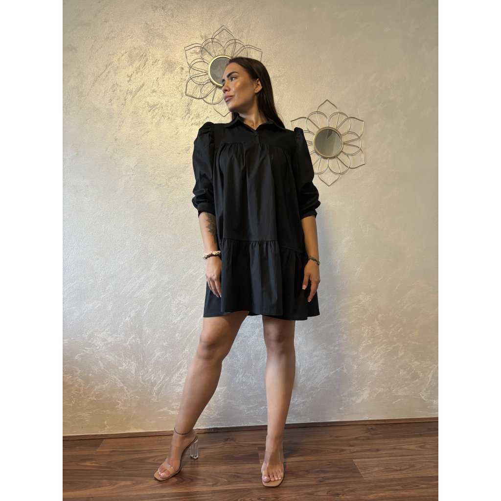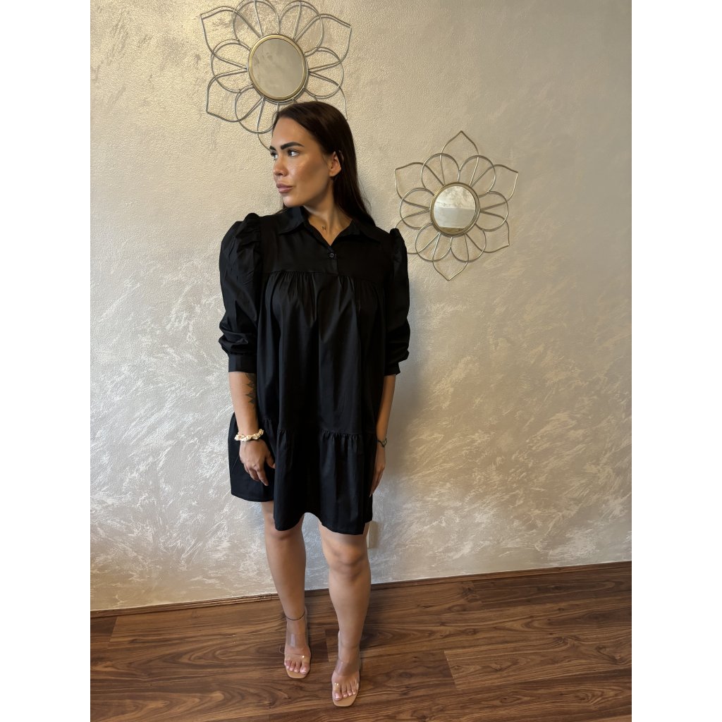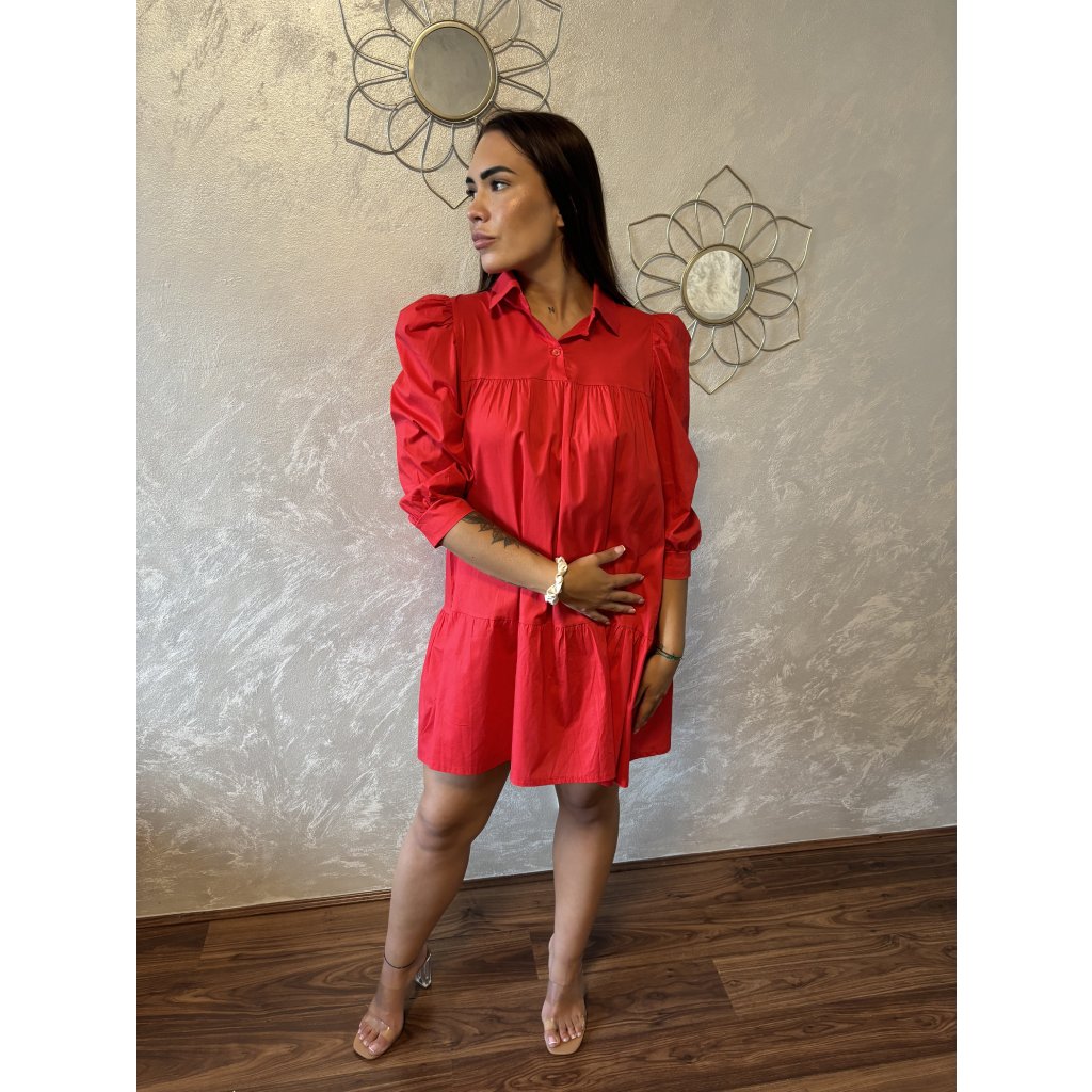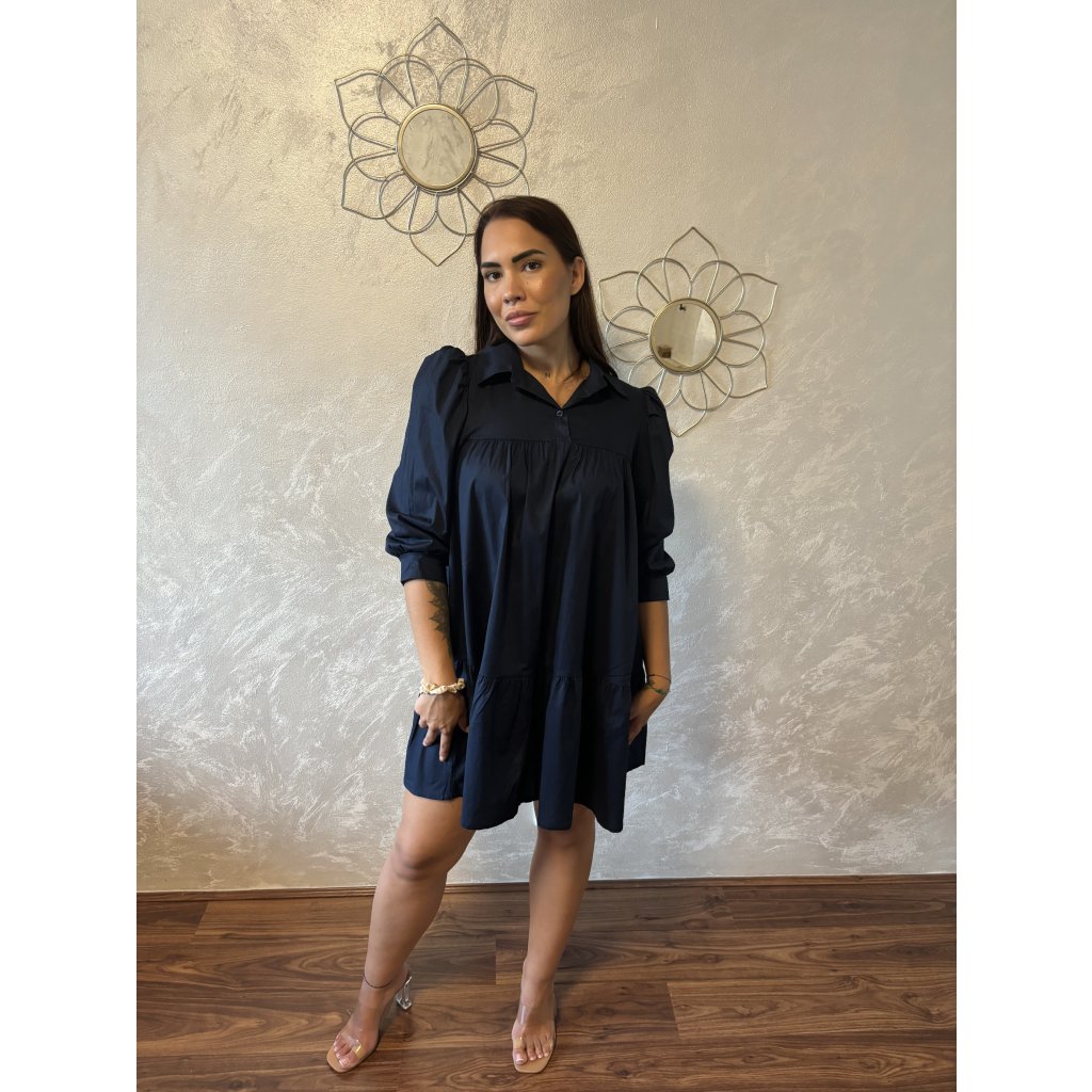 Tyto stylové košilové šaty s 3/4 balónovými rukávy nabízejí pohodlný a elegantní vzhled pro každodenní nošení i speciální příležitosti. Díky volnému střihu a lehce nabírané sukni jsou šaty ideální pro jakýkoli typ postavy. Tyto šaty z lehkého a pohodlného materiálu jsou ideální volbou pro jakoukoliv příležitost – ať už do práce, na společenskou akci, nebo na volný čas. Mají klasický límeček a jsou dostupné ve třech výrazných barvách: černá, tmavě modrá a červená, které přidají vašemu šatníku šmrnc. Šaty, které upoutají pozornost a poskytnou maximální pohodlí!
