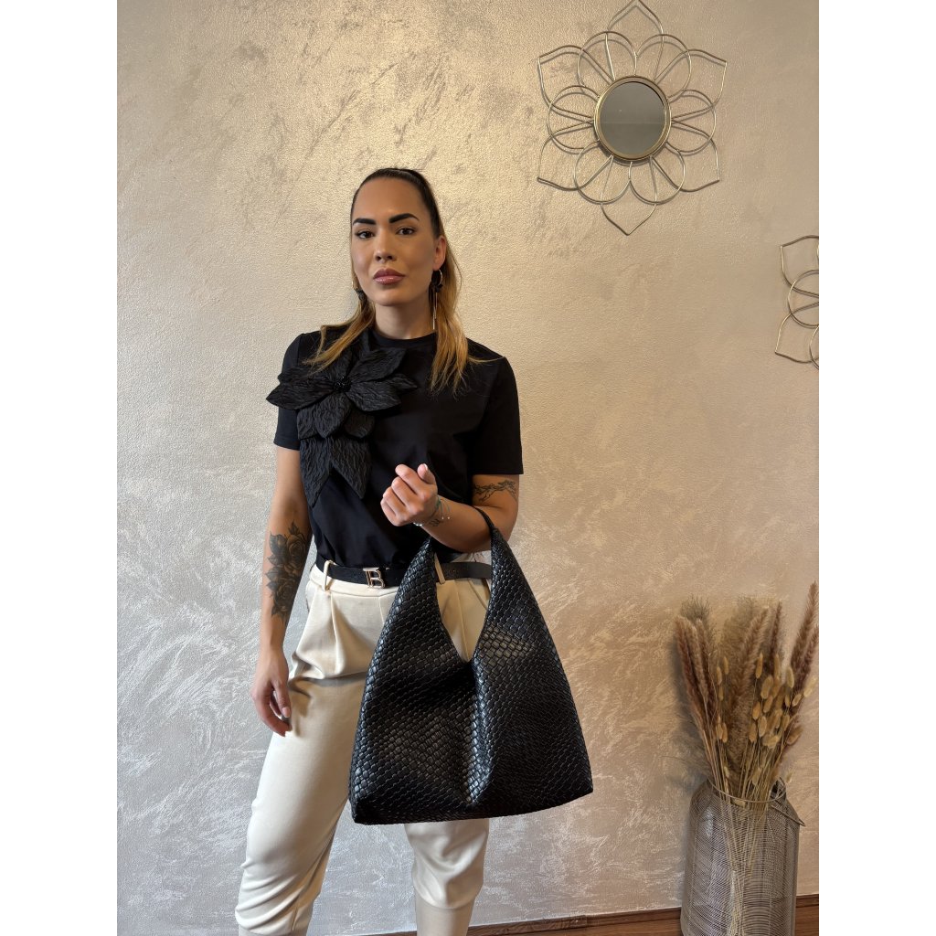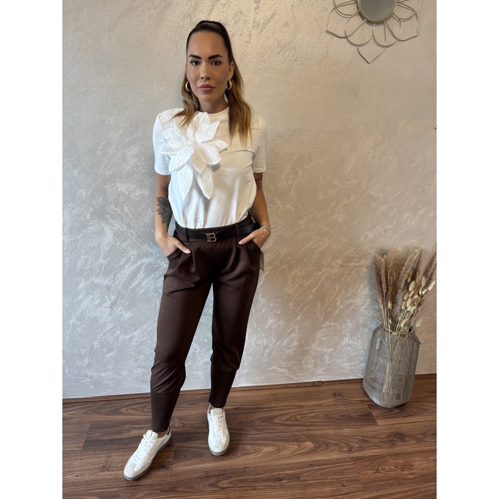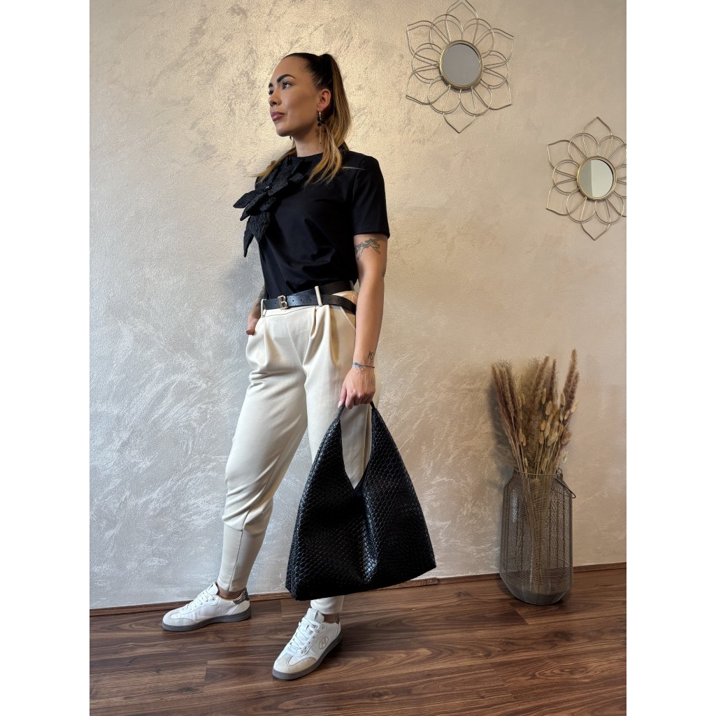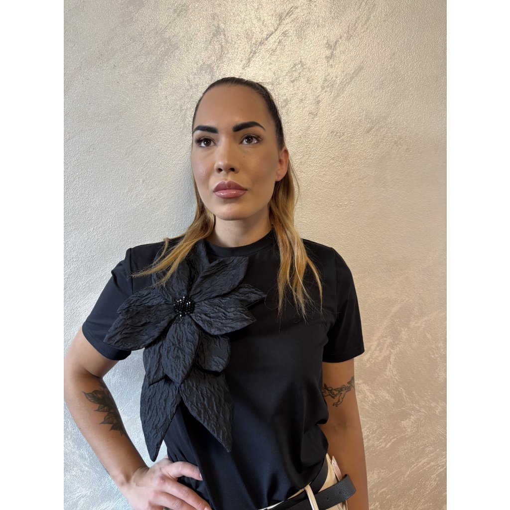 Elegantní a stylové tričko s výrazným 3D květem, které dodá vašemu outfitu jedinečný šmrnc. Perfektně se hodí k elegantním kalhotám i sportovnějším kombinacím. Dostupné ve dvou nadčasových barvách – bílé a černé.