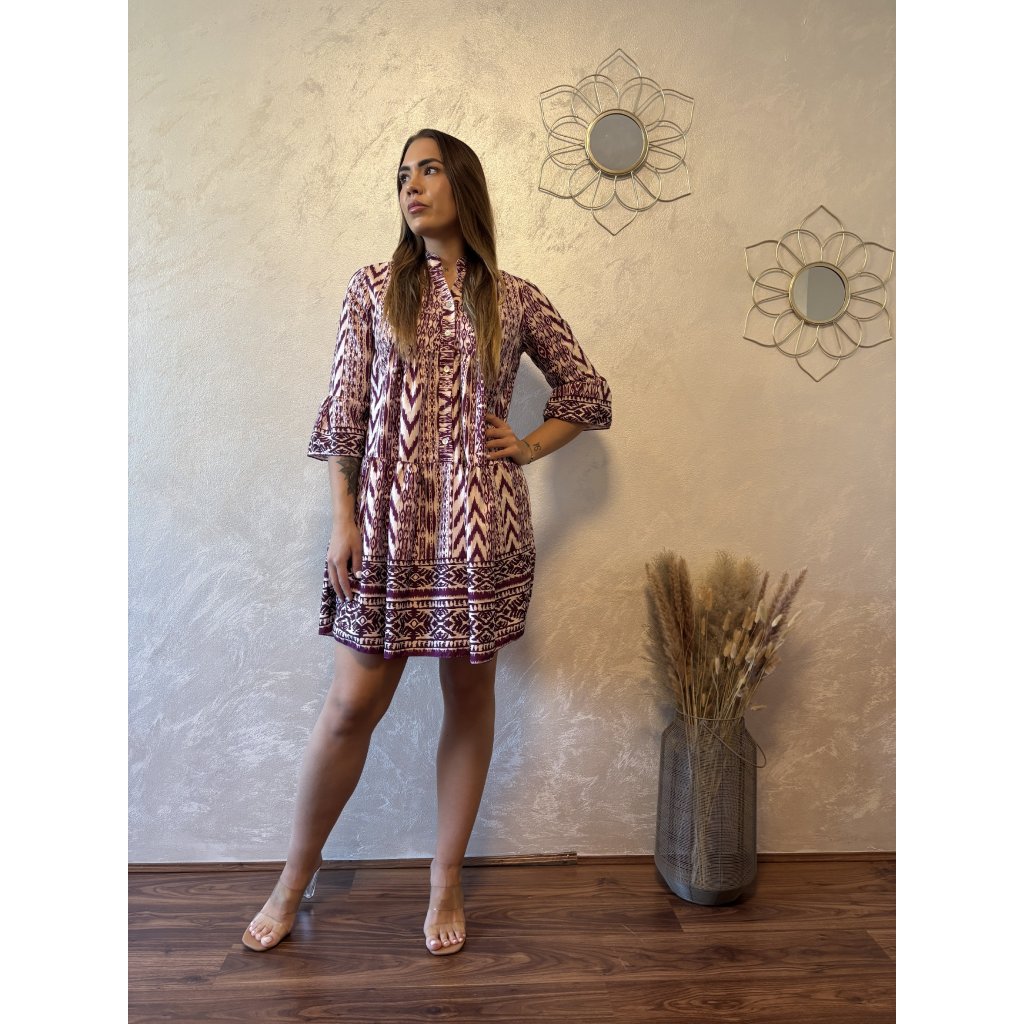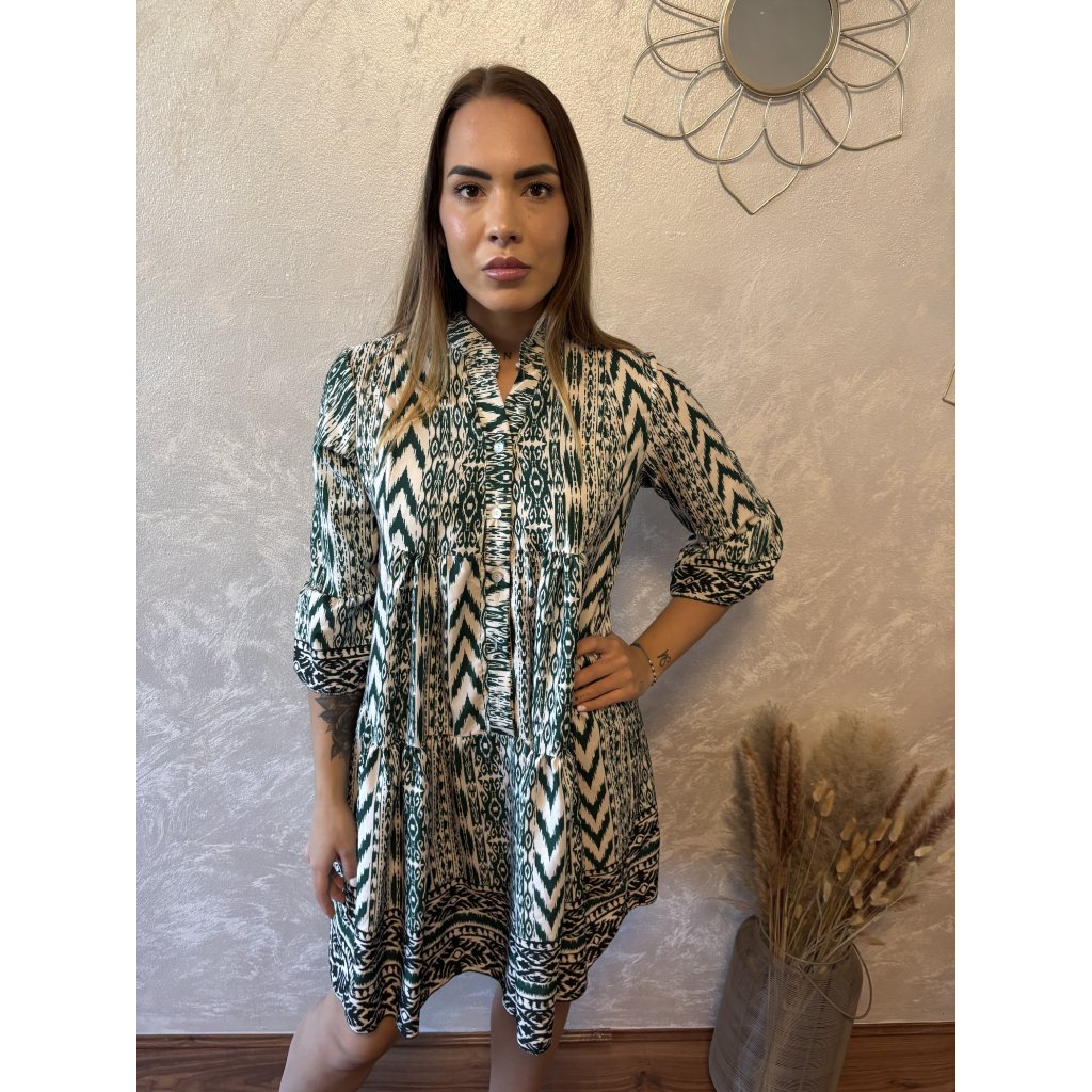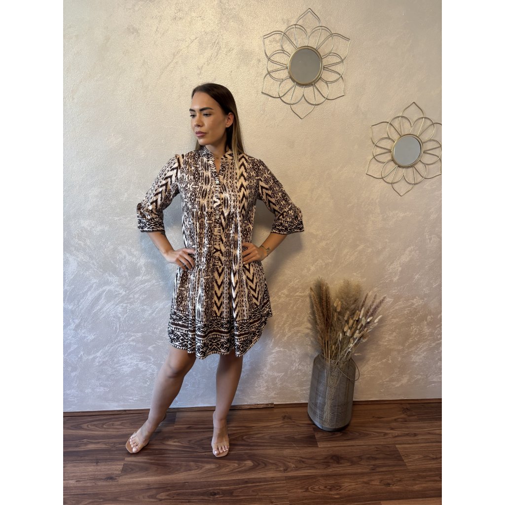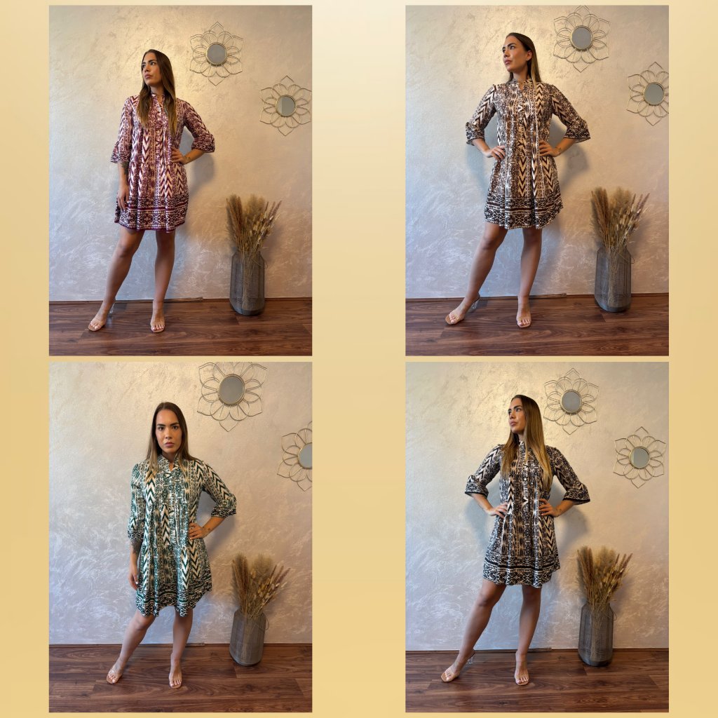 Vzdušné, pohodlné a neuvěřitelně šik – šaty SANTORINI jsou ideální volbou pro horké letní dny. Díky volnému střihu a lehkému materiálu se skvěle nosí a lichotí každé postavě. Originální etno vzor v kombinaci se čtyřmi stylovými barvami dodá outfitu ten správný prázdninový vibe. Doplněné o rozšířené 3/4 rukávy a decentní výstřih se zapínáním na knoflíky.