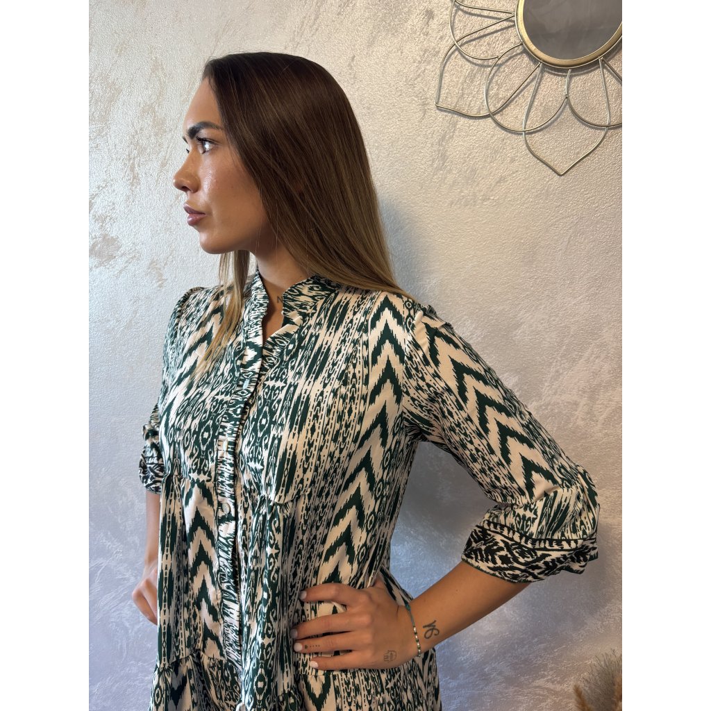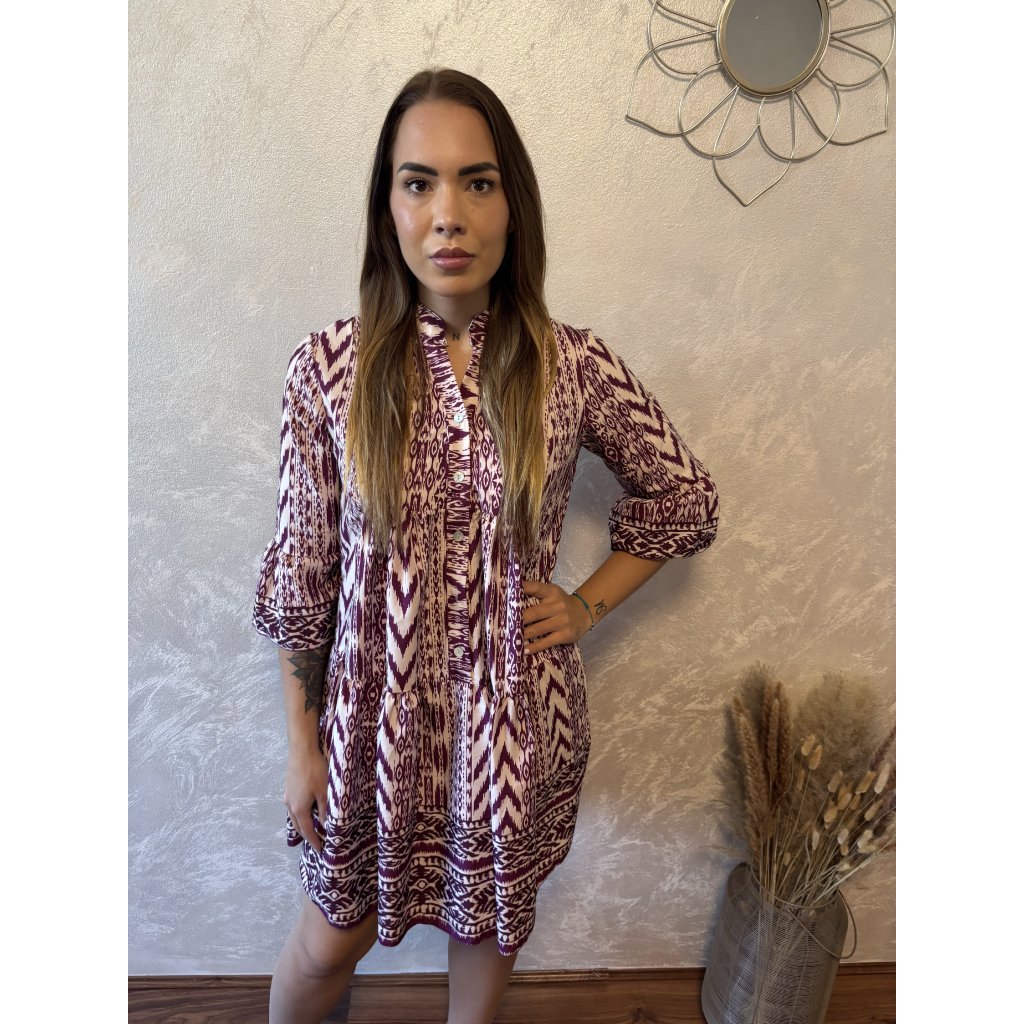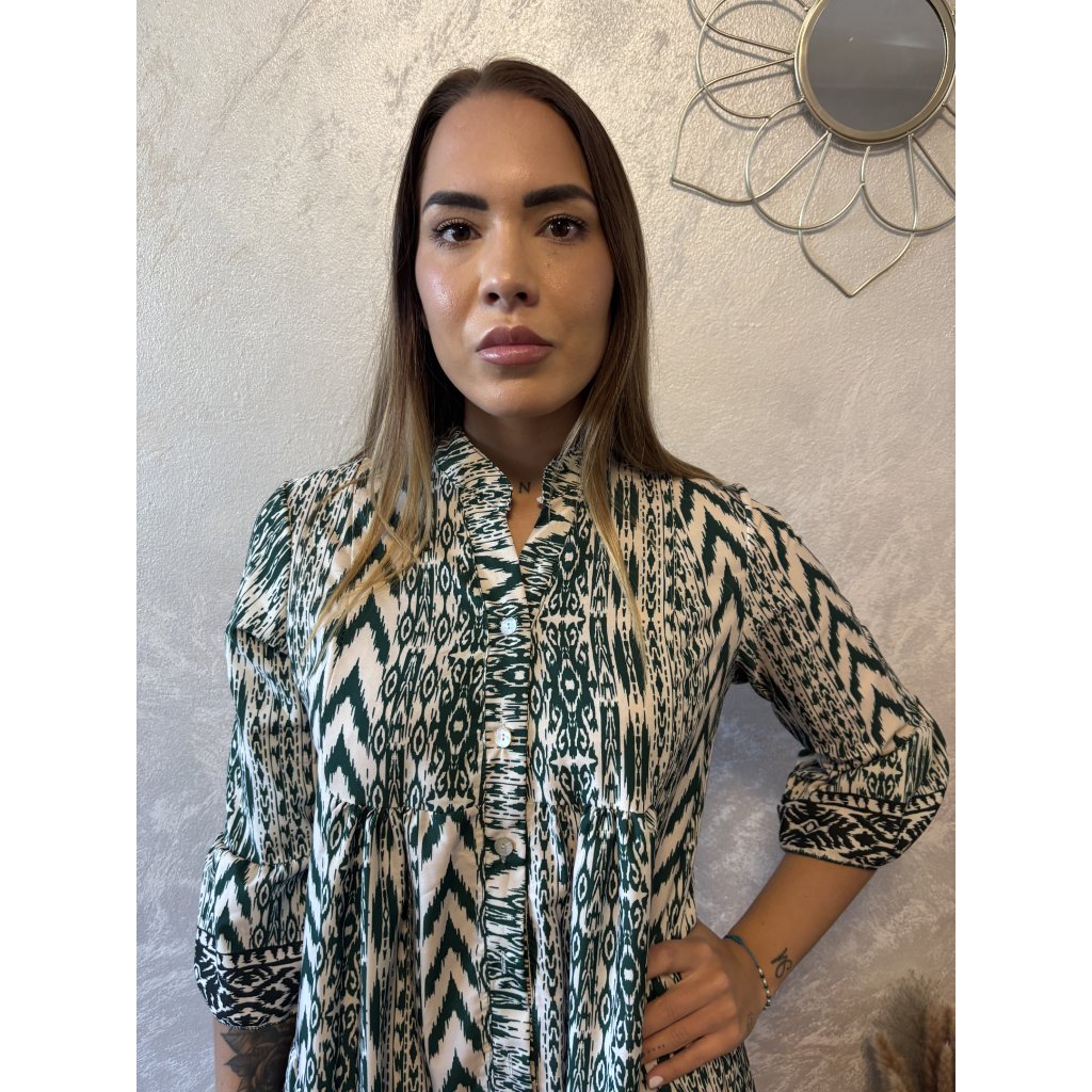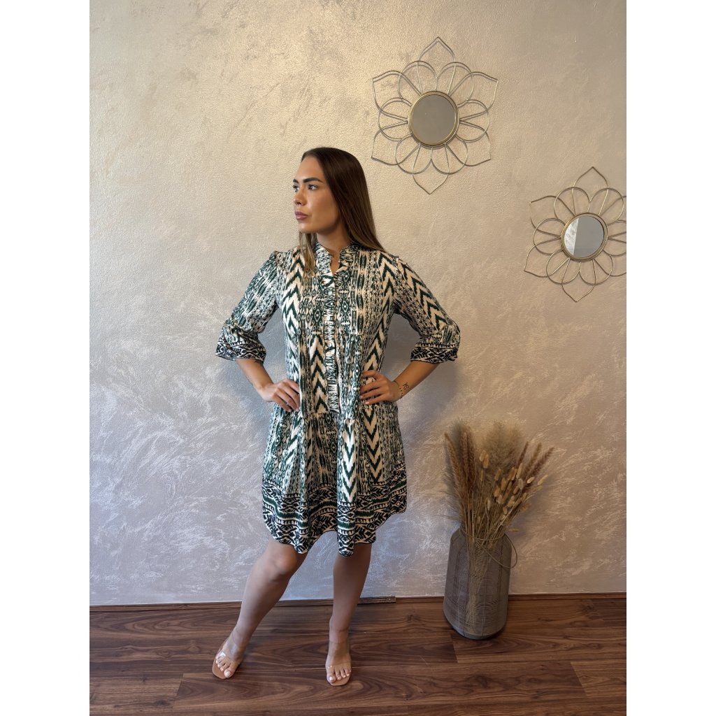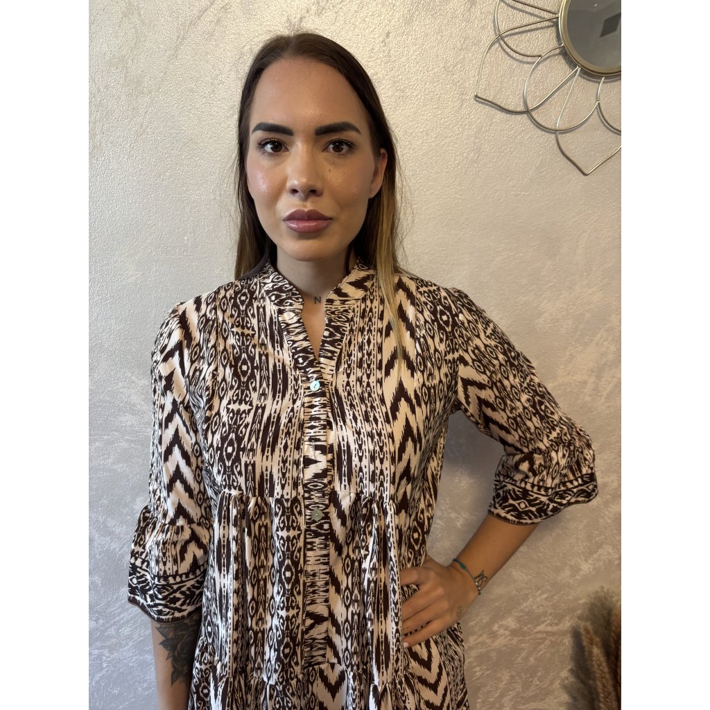 Vzdušné, pohodlné a neuvěřitelně šik – šaty SANTORINI jsou ideální volbou pro horké letní dny. Díky volnému střihu a lehkému materiálu se skvěle nosí a lichotí každé postavě. Originální etno vzor v kombinaci se čtyřmi stylovými barvami dodá outfitu ten správný prázdninový vibe. Doplněné o rozšířené 3/4 rukávy a decentní výstřih se zapínáním na knoflíky.