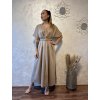 Rozměry: prsa 2 x 50 cm, pas 2 x 46 cm, délka rukávu vnější 34 cm a vnitřní 20 cm, spodní šířka šatů 2 x 107 cm, celková délka 135 cm