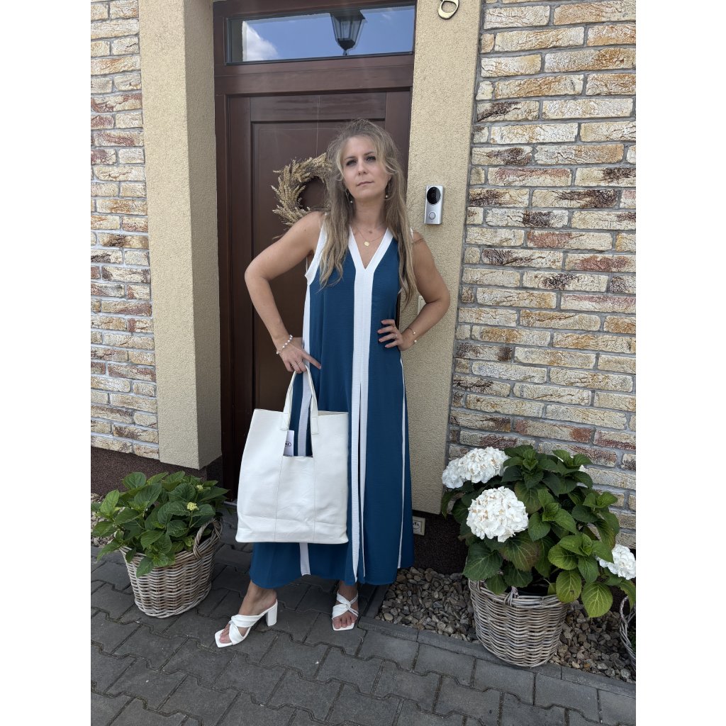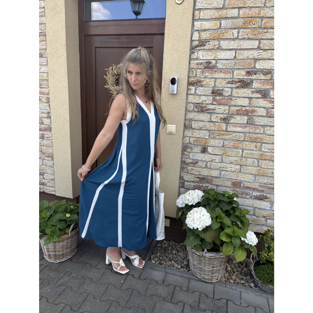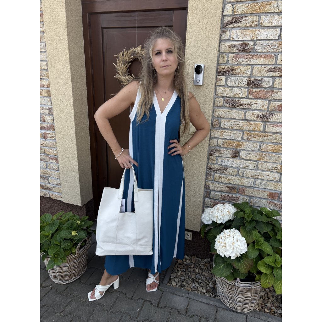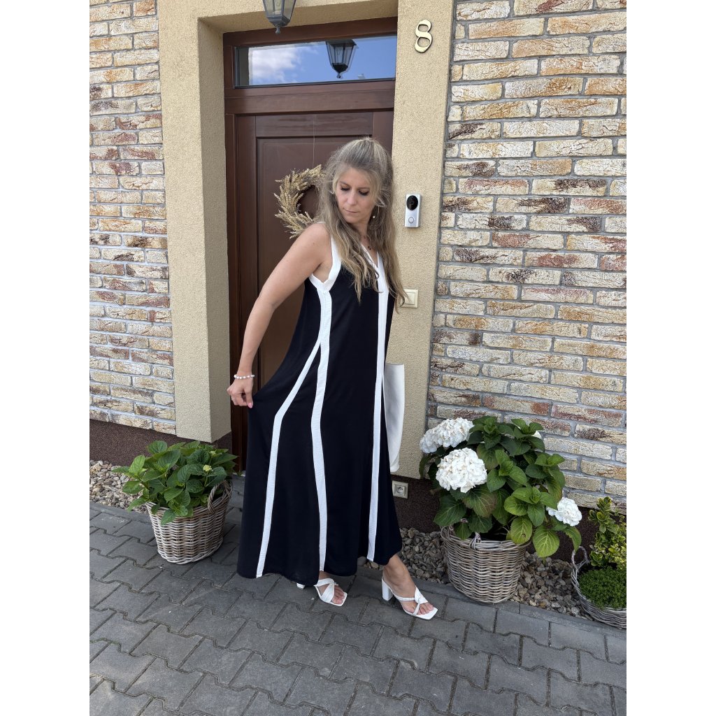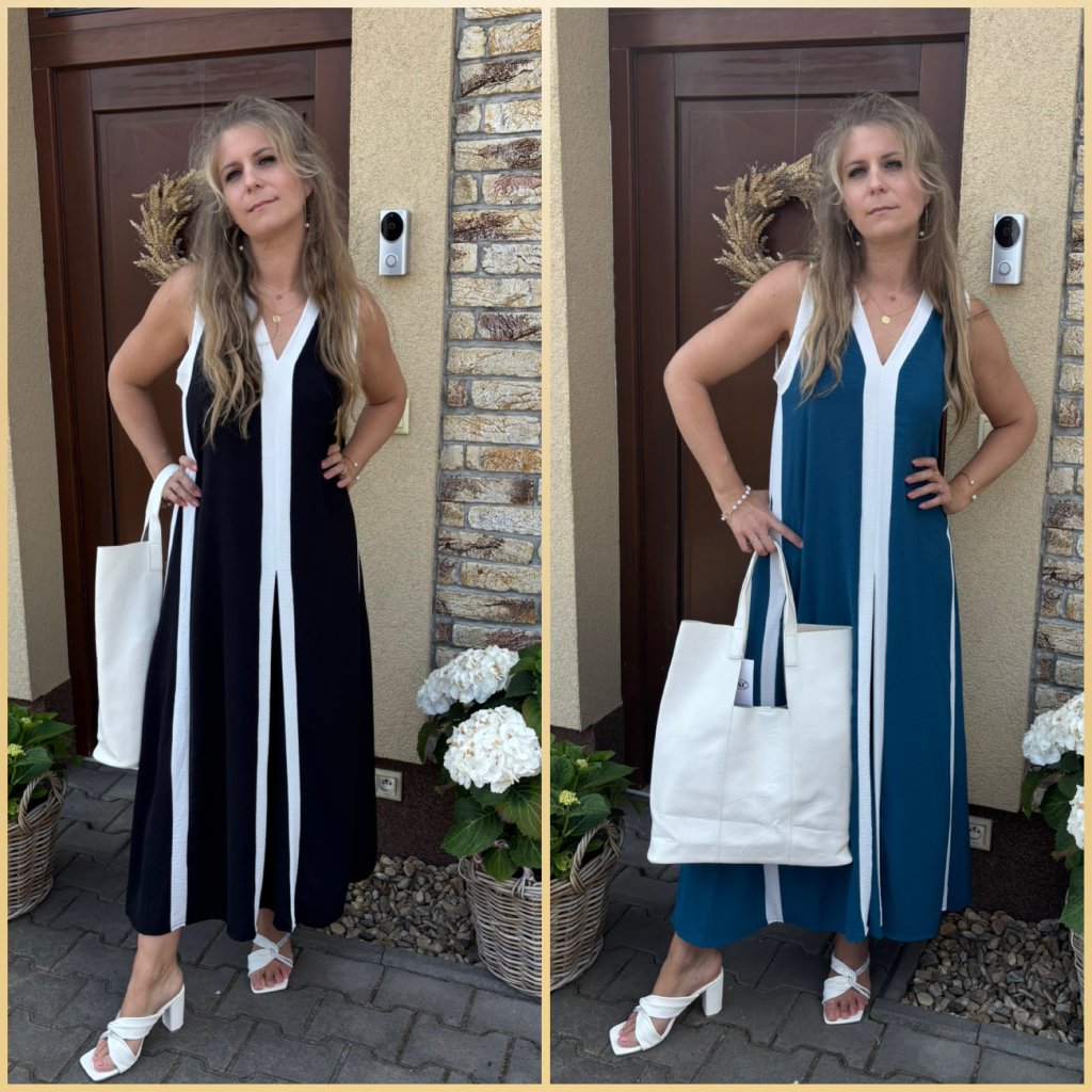 Elegantní, pohodlné a nadčasové – to jsou naše Maxi šaty Monaco, které se stanou vaším letním must-have kouskem. Díky volnému střihu, jemně splývavému materiálu a kontrastnímu svislému pruhu opticky prodlužují postavu a lichotí každému typu postavy. Perfektní volba pro dovolenou, letní večírky i každodenní nošení. Šaty mají praktické kapsy, hlubší výstřih do “V”. Kombinujte je s pantoflemi na podpatku, teniskami nebo sandálky – vždy budete vypadat skvěle.