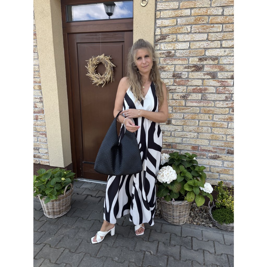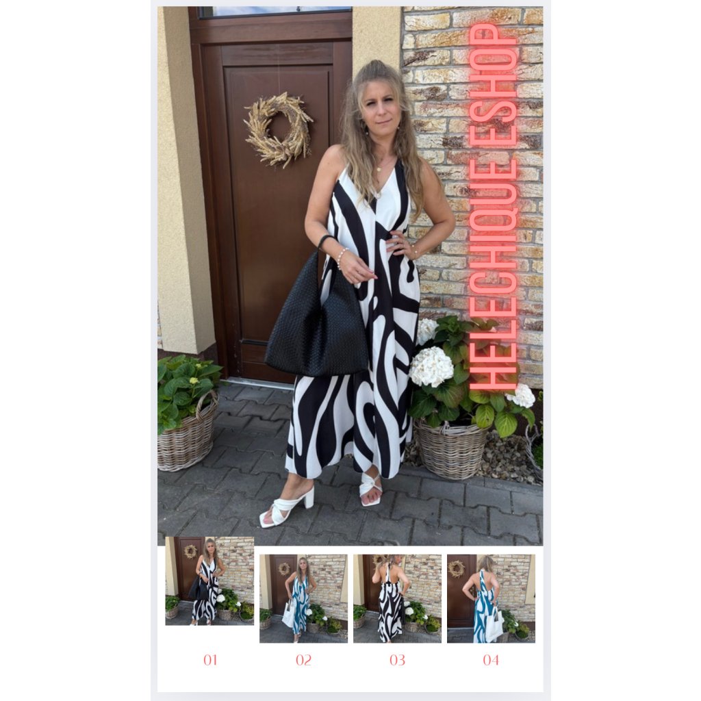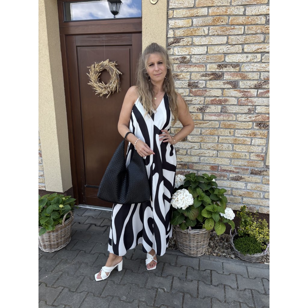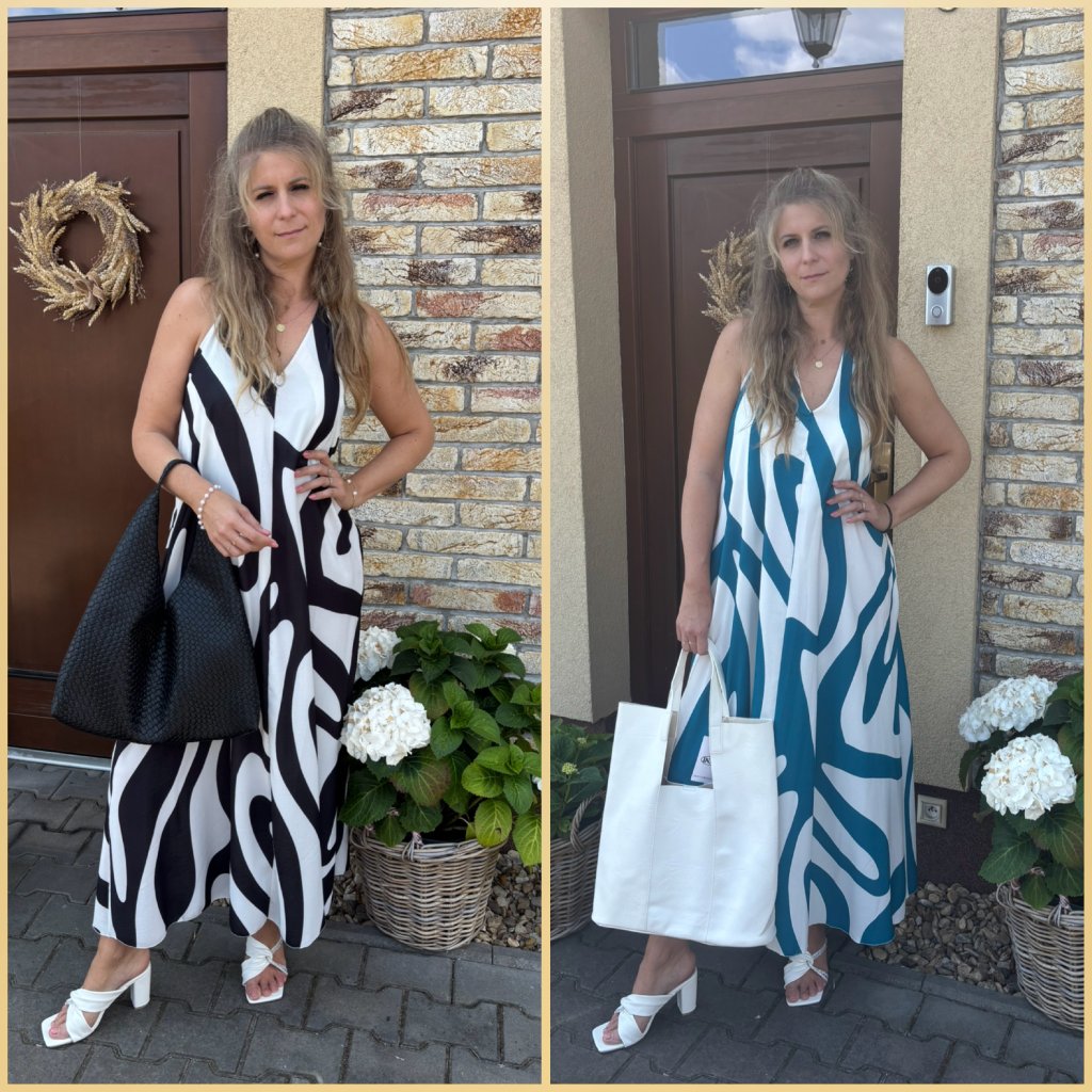 Elegantní, ležérní a nepřehlédnutelné. Maxi šaty Monochrome Waves vynikají výrazným vlnovým vzorem a vzdušným střihem, který lichotí každé postavě. Splývavý materiál zajišťují maximální pohodlí i styl – ať už jsi na dovolené, ve městě nebo na letním večírku. Tip: Kombinuj s jednoduchými sandálky a výraznou kabelkou pro dokonalý letní look.