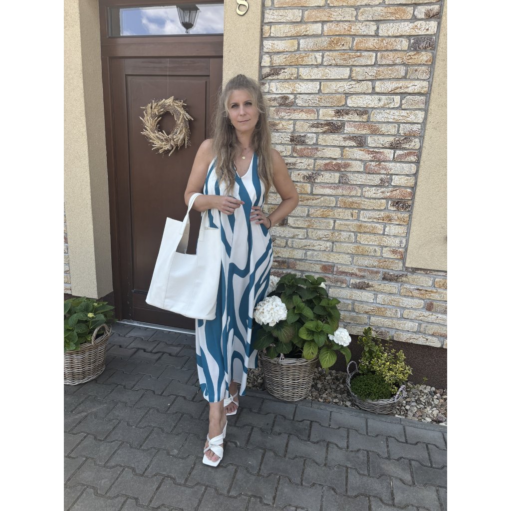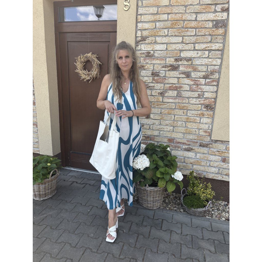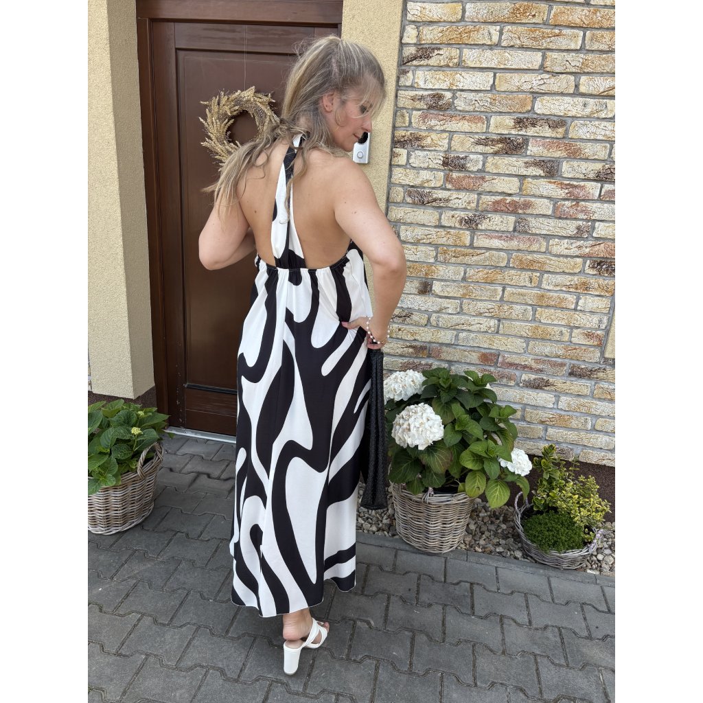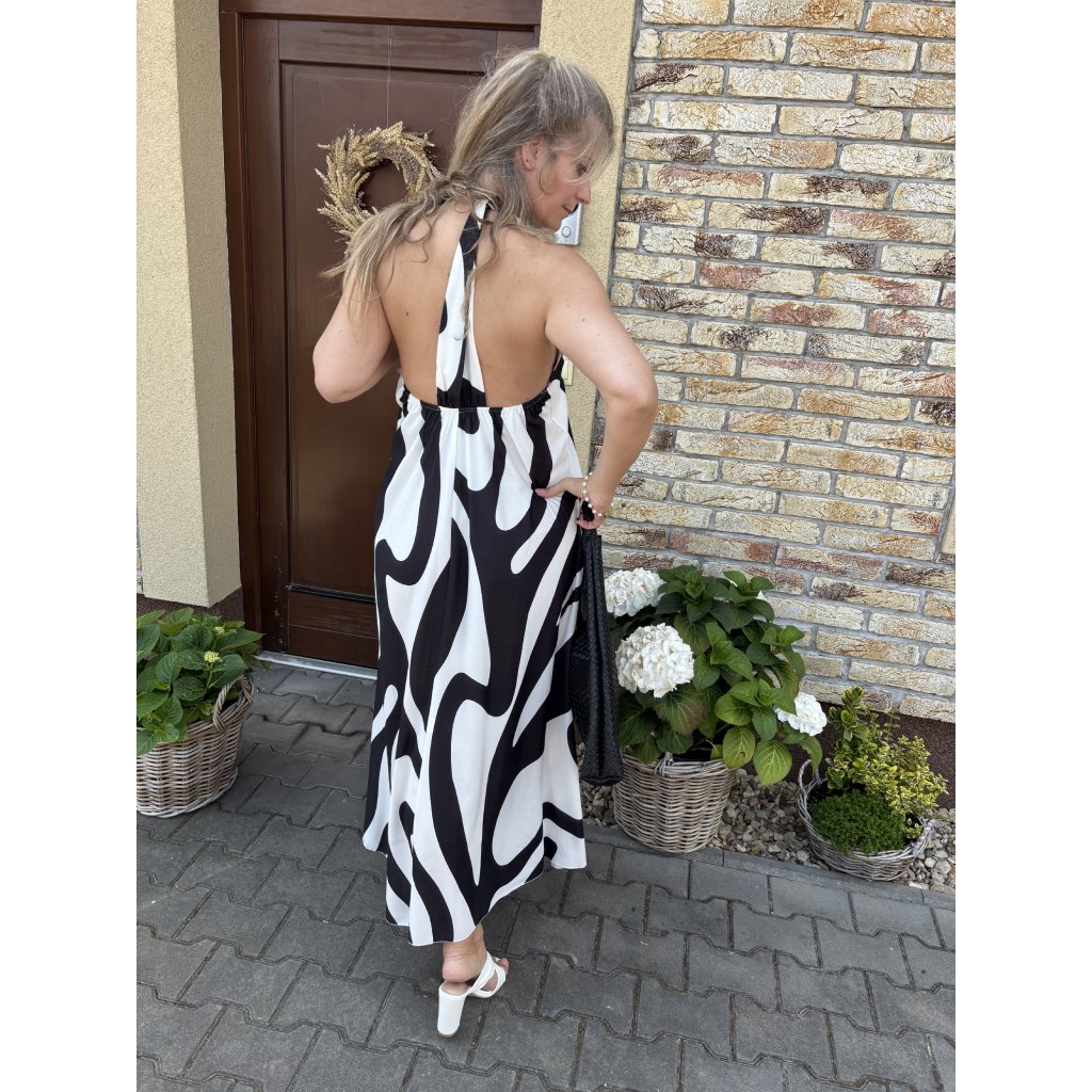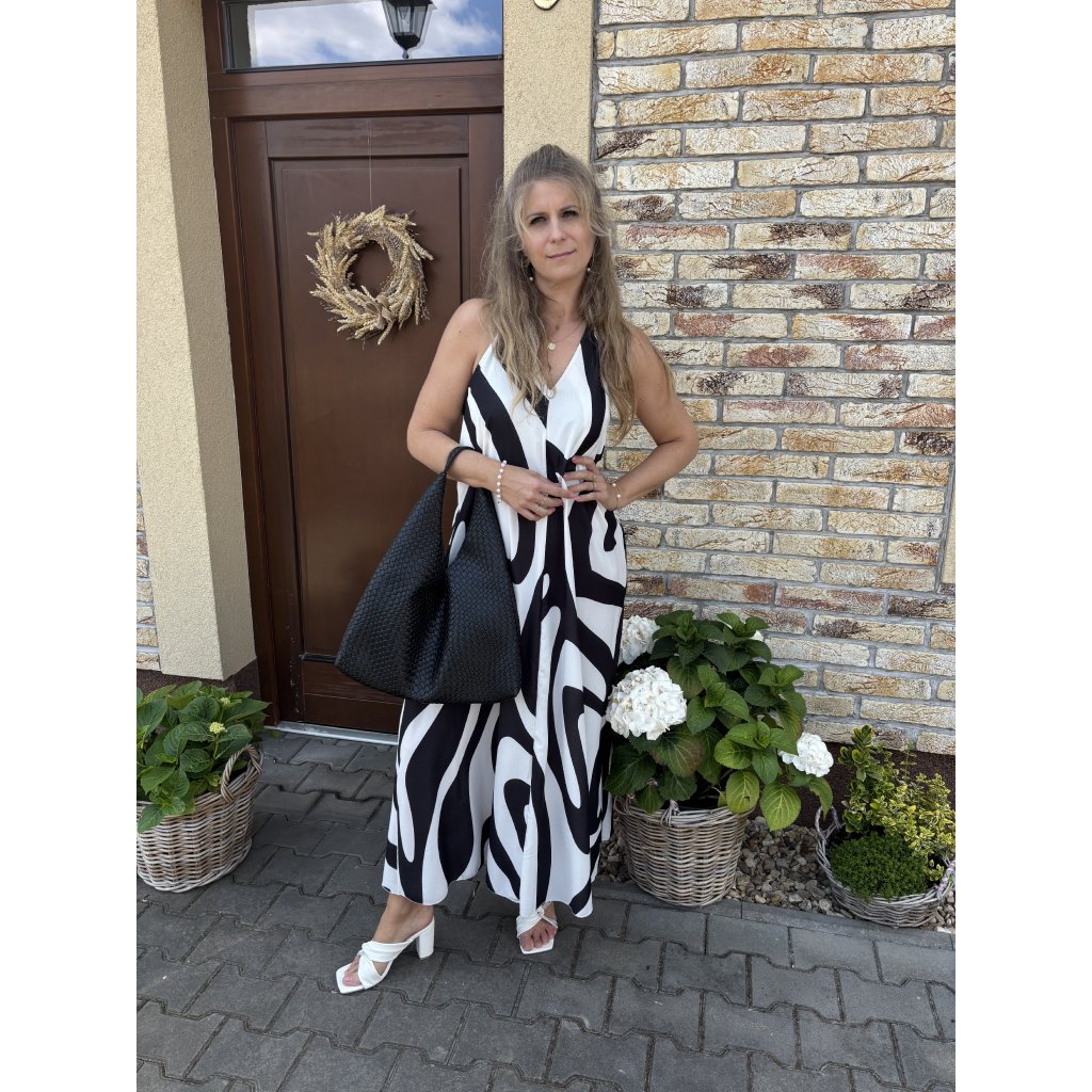 Elegantní, ležérní a nepřehlédnutelné. Maxi šaty Monochrome Waves vynikají výrazným vlnovým vzorem a vzdušným střihem, který lichotí každé postavě. Splývavý materiál zajišťují maximální pohodlí i styl – ať už jsi na dovolené, ve městě nebo na letním večírku. Tip: Kombinuj s jednoduchými sandálky a výraznou kabelkou pro dokonalý letní look.