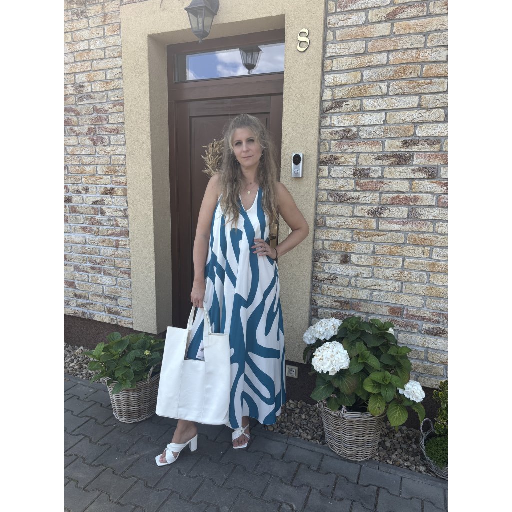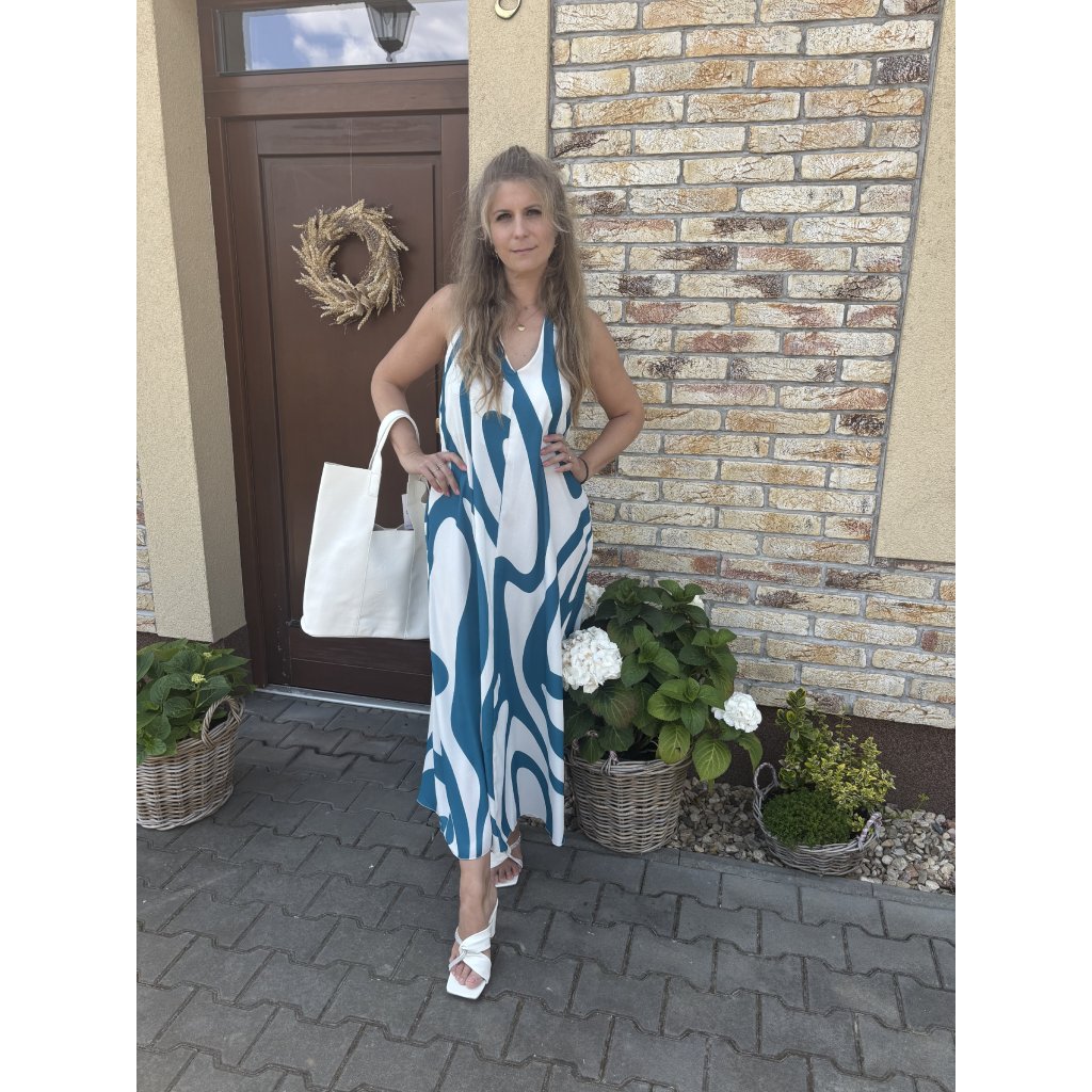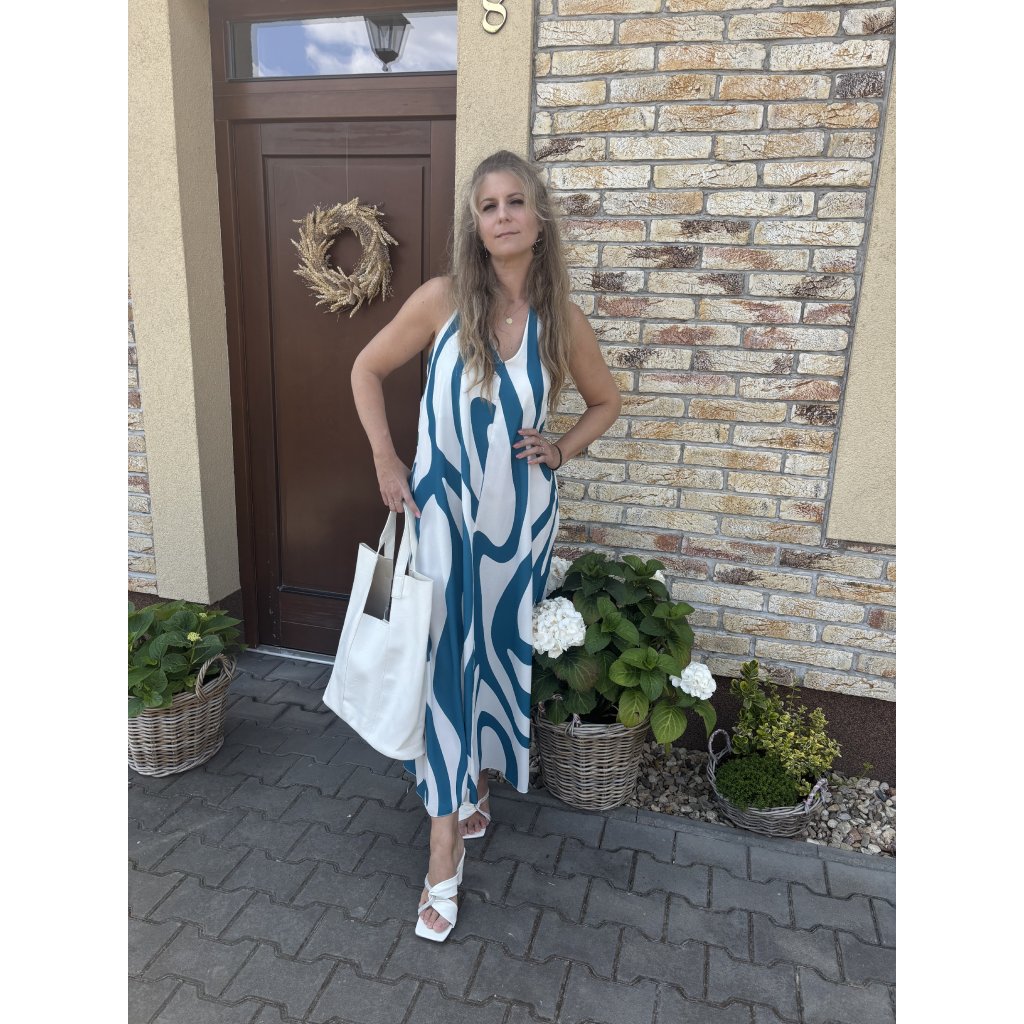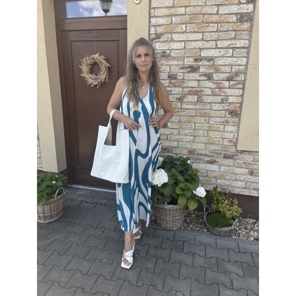 Elegantní, ležérní a nepřehlédnutelné. Maxi šaty Monochrome Waves vynikají výrazným vlnovým vzorem a vzdušným střihem, který lichotí každé postavě. Splývavý materiál zajišťují maximální pohodlí i styl – ať už jsi na dovolené, ve městě nebo na letním večírku. Tip: Kombinuj s jednoduchými sandálky a výraznou kabelkou pro dokonalý letní look.