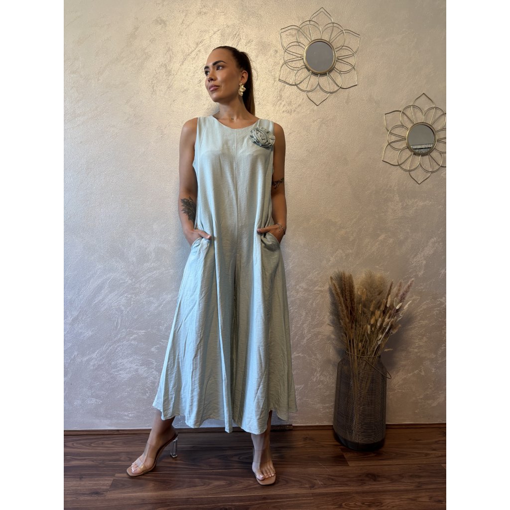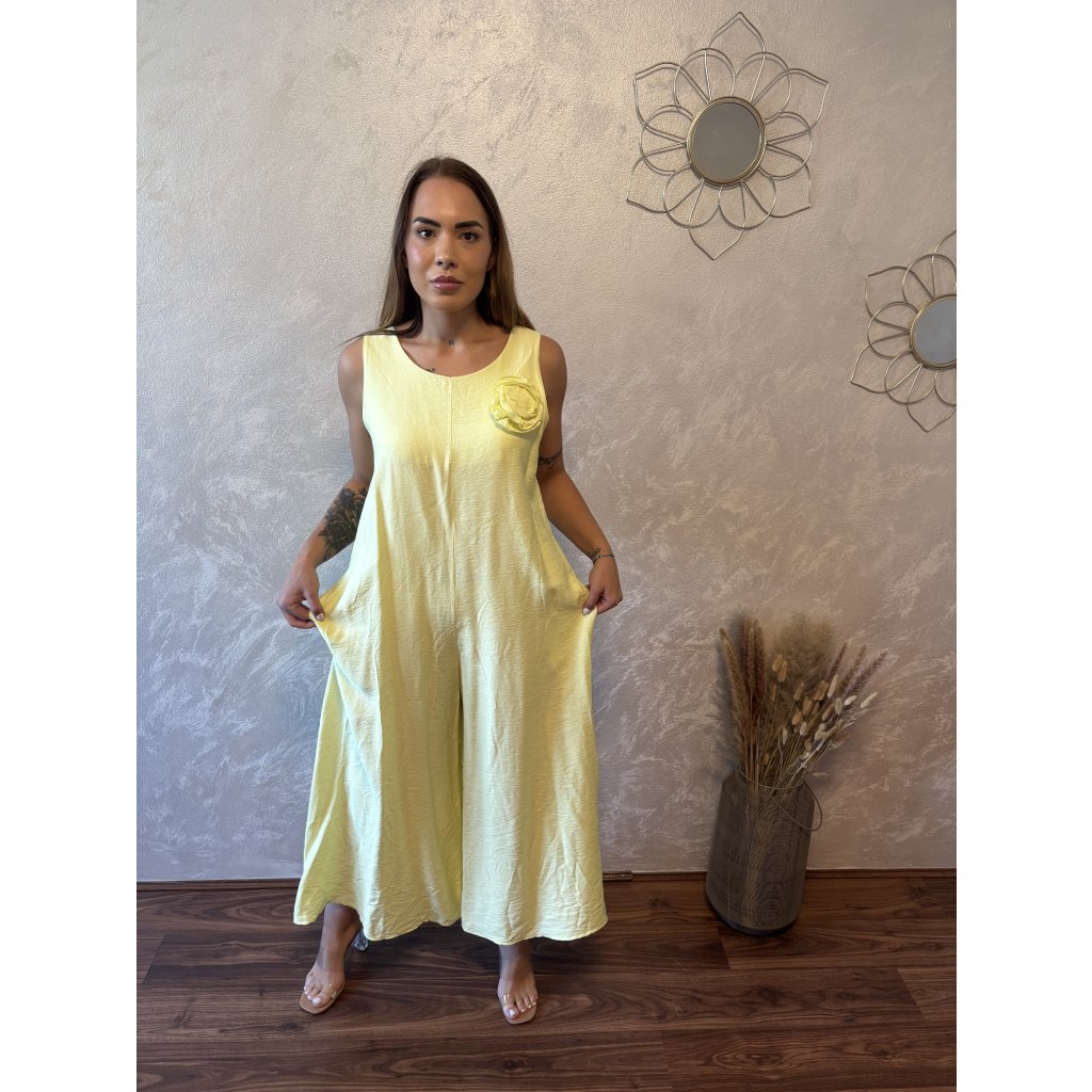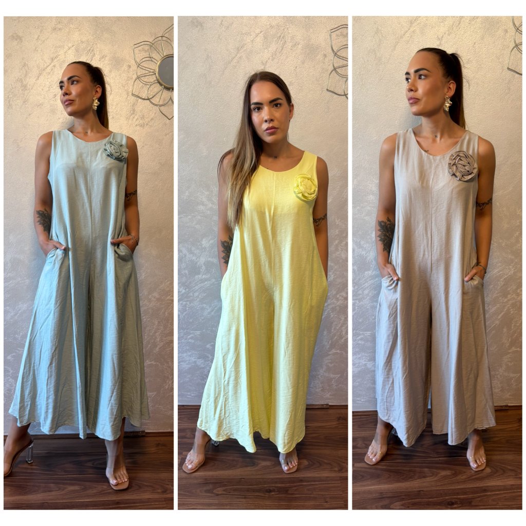 Objevte pohodlí a šmrnc v overalu FLORENCE – stylovém kousku, který je ideální na letní dny i dovolenou. Lehký, vzdušný materiál zaručuje maximální komfort, zatímco áčkový střih lichotí každé postavě. Overal má praktické kapsy a je ozdoben látkovou květinou na rameni – tu můžete dle nálady připnout či sundat. Dostupný ve čtyřech jemných odstínech: mentolová, růžová, žlutá a písková.