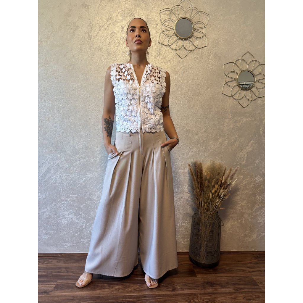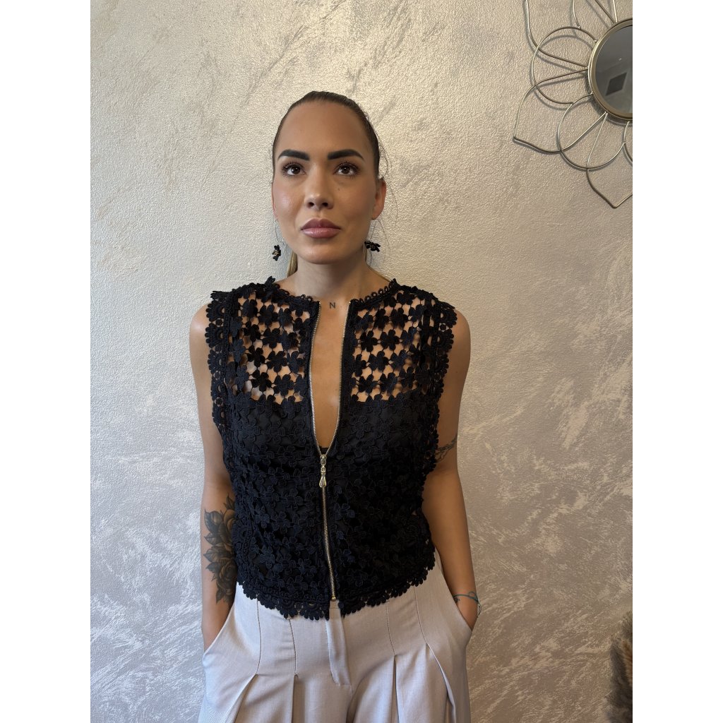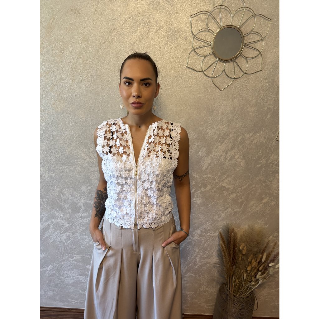 Oboustranný krajkový top „Flora“ je must-have letního šatníku. Díky promyšlenému střihu jej můžeš nosit dvěma způsoby – jako elegantní top se zapínáním vzadu nebo jako vestičku se zipem vpředu. Ideální k šortkám, džínám i sukním. Květinová krajka dodá romantický nádech. 2v1 – noste jako top nebo vestu. Dolaď svůj outfit jediným kouskem, který nabízí hned dva styly v jednom!
