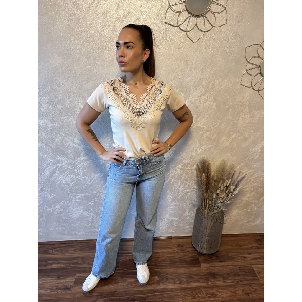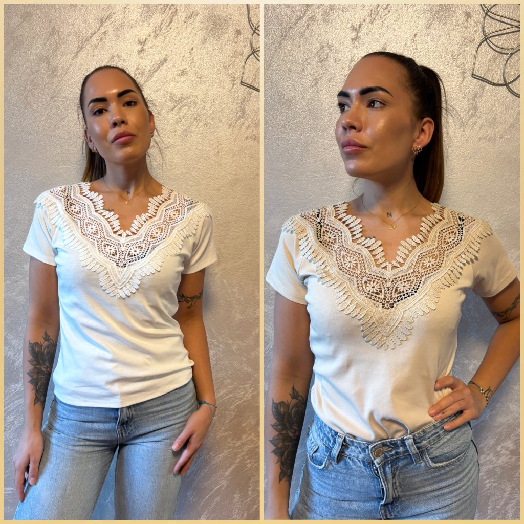 Elegantní a zároveň pohodlné – tričko Sophie je ideální volbou pro ženy, které chtějí i v běžném outfitu působit žensky a upraveně. Hlavní dominantou tohoto kousku je nádherný krajkový výstřih ve tvaru V, který dodává tričku romantický a sofistikovaný vzhled. Vyrobeno z příjemného, pružného materiálu, který se krásně přizpůsobí postavě. Skvěle vypadá jak s džínami, tak i s elegantní sukní nebo kalhotami. Doplňte jemnými šperky a minimalistickým psaníčkem pro romantický look.